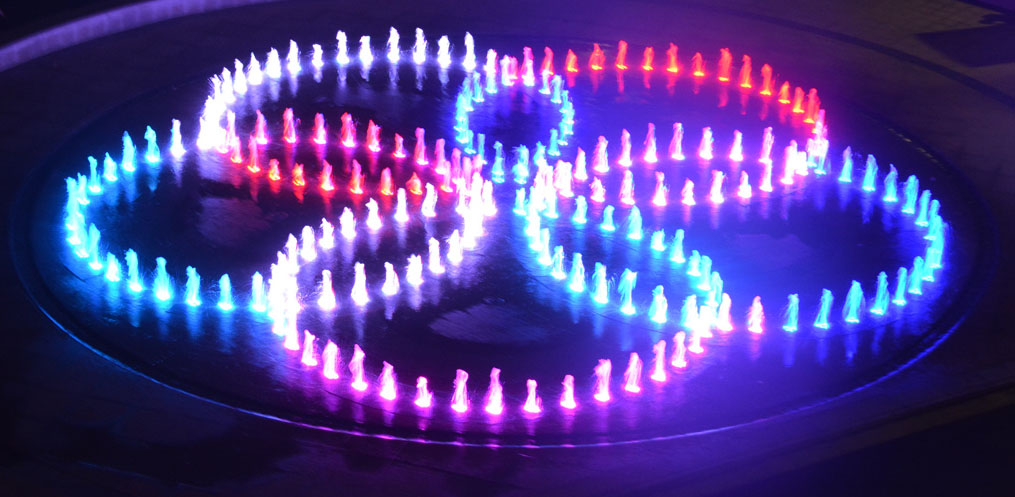 悅城精品水秀由四川音樂噴泉公司、音樂噴泉設(shè)計(jì)公司-四川旭鴻水藝景觀工程有限公司精心打造,此噴泉變頻單點(diǎn)控制,DMX512燈光控制,室外全頻音響形成聲、光、水的完美配合。